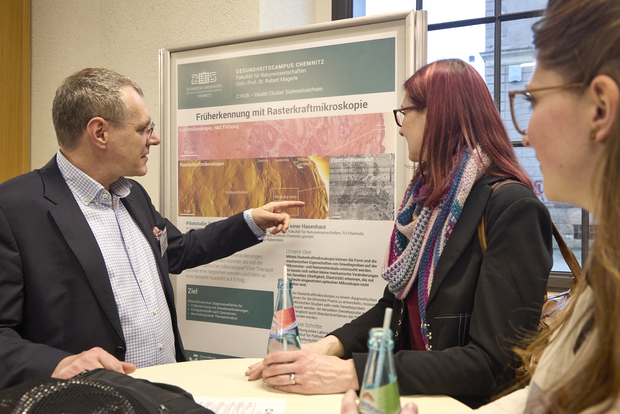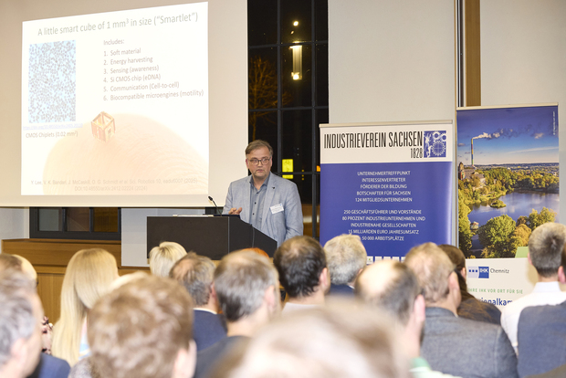 Im Mittelpunkt des Morgens standen drei Forschungsfelder, die exemplarisch zeigen, wie vielseitig die Chemnitzer Wissenschaft für industrielle Anwendungen ist: